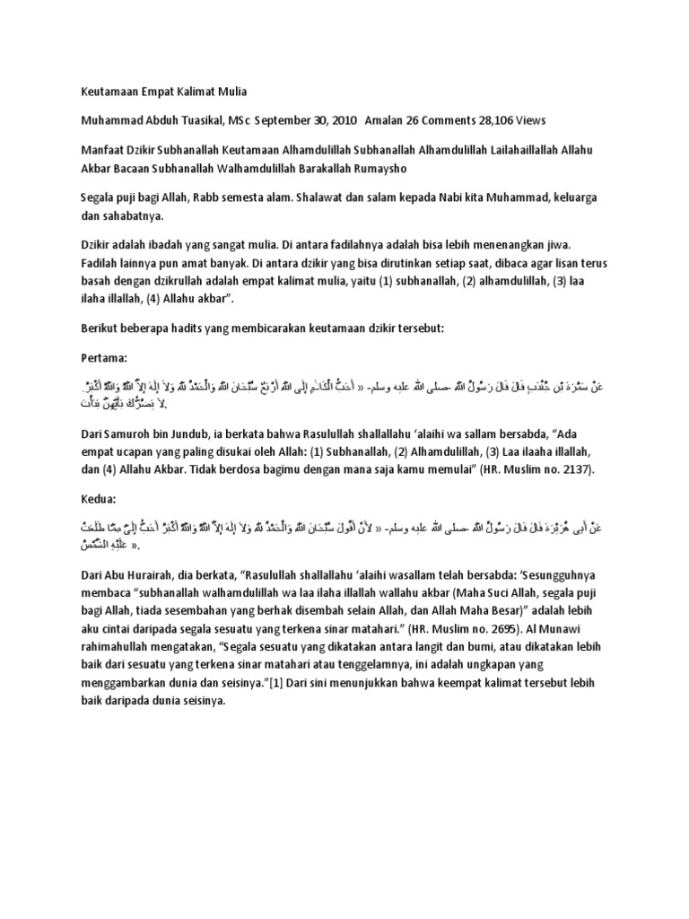 Keutamaan Empat Kalimat Mulia Docx Hanafi