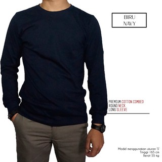Kaos Polos Pria Katun Combed 30s Lengan Panjang Longsleeve Warna Navy Biru Dongker
