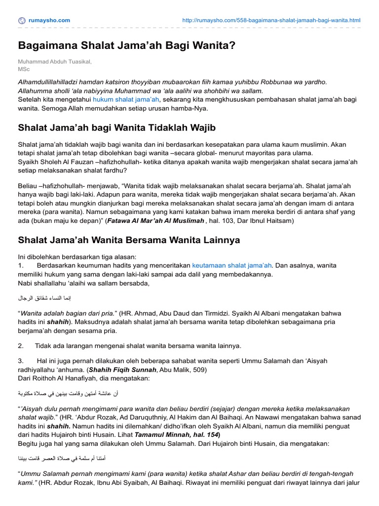 Rumaysho Com Bagaimana Shalat Jamaah Bagi Wanita