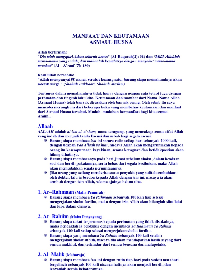 Keutamaan Membaca Asmaul Husna 99 Nama Allah Halaman 4