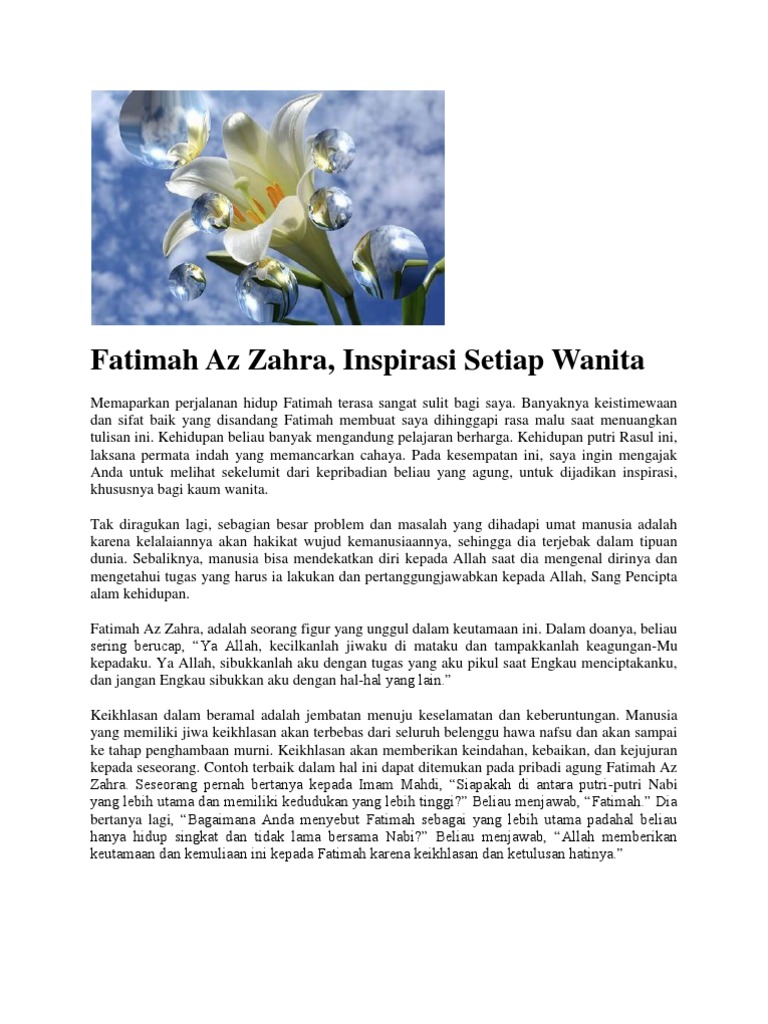 Terdapat beberapa tuntunan yang menjelaskan keutamaan hari kamis dan bacaan doa yang biasa dipanjatkan fatimah az zahra. Itulah beberapa hikmah manfaat dan keutamaan mengamalkanmembaca surat al fatihah yang dapat kami share. Fatimah az zahra sa menyerupai nabi saw shahih at tirmidzi jilid 2 halaman 319 bab keutamaan fathimah.
