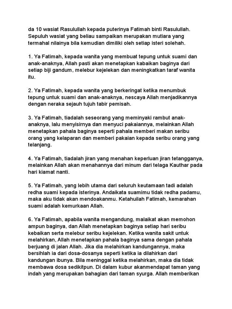 10 Wasiat Rasulullah Kepada Puterinya Fatimah Binti Rasulullah