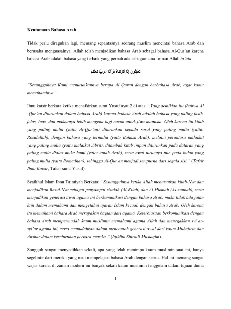 Doc Keutamaan Bahasa Arab Syaiful Hasan Academia Edu
