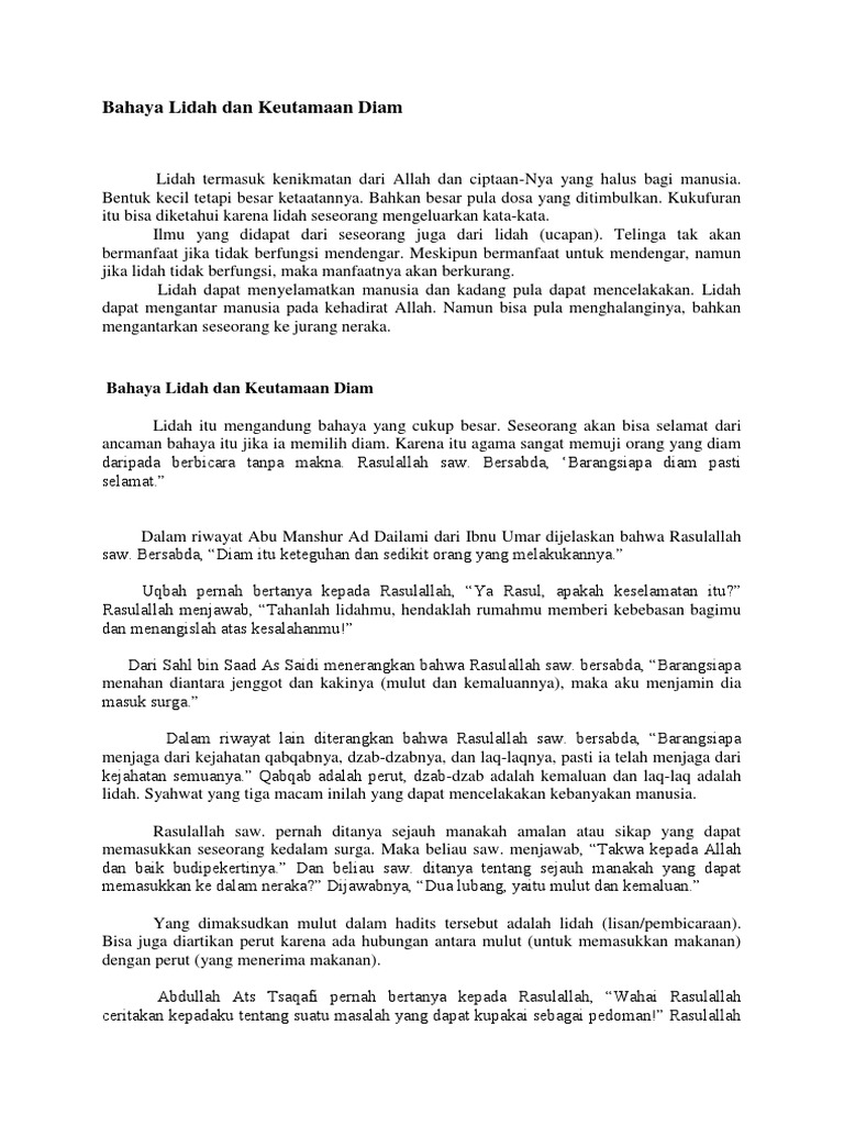 Bahaya Lidah Dan Keutamaan Diam Setia1heri Org