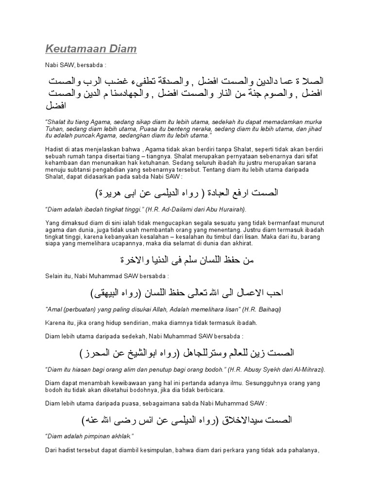Kal alnby sl allh aalyh oslm. Dan pada diam itu selamat. Dengan memilih diam aktif kita akan menghemat kata kata yang berpeluang menimbulkan masalah.