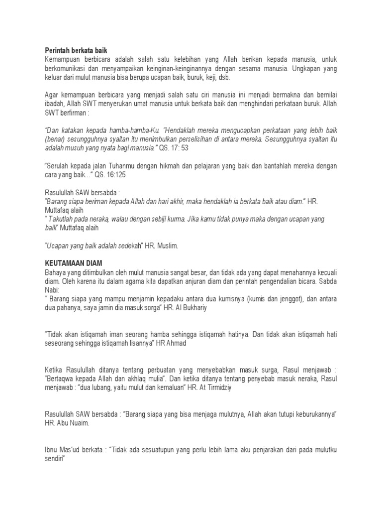Keutamaan Bicara Yang Baik Atau Lebih Baik Diam Ebook Anak