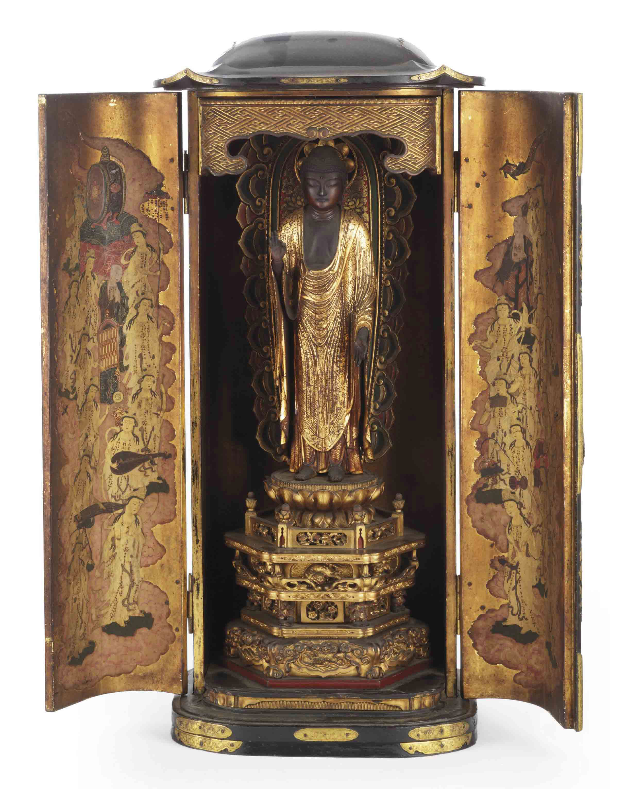 A Japanese Wood Lacquer Travelling Shrine Zushi 19th
