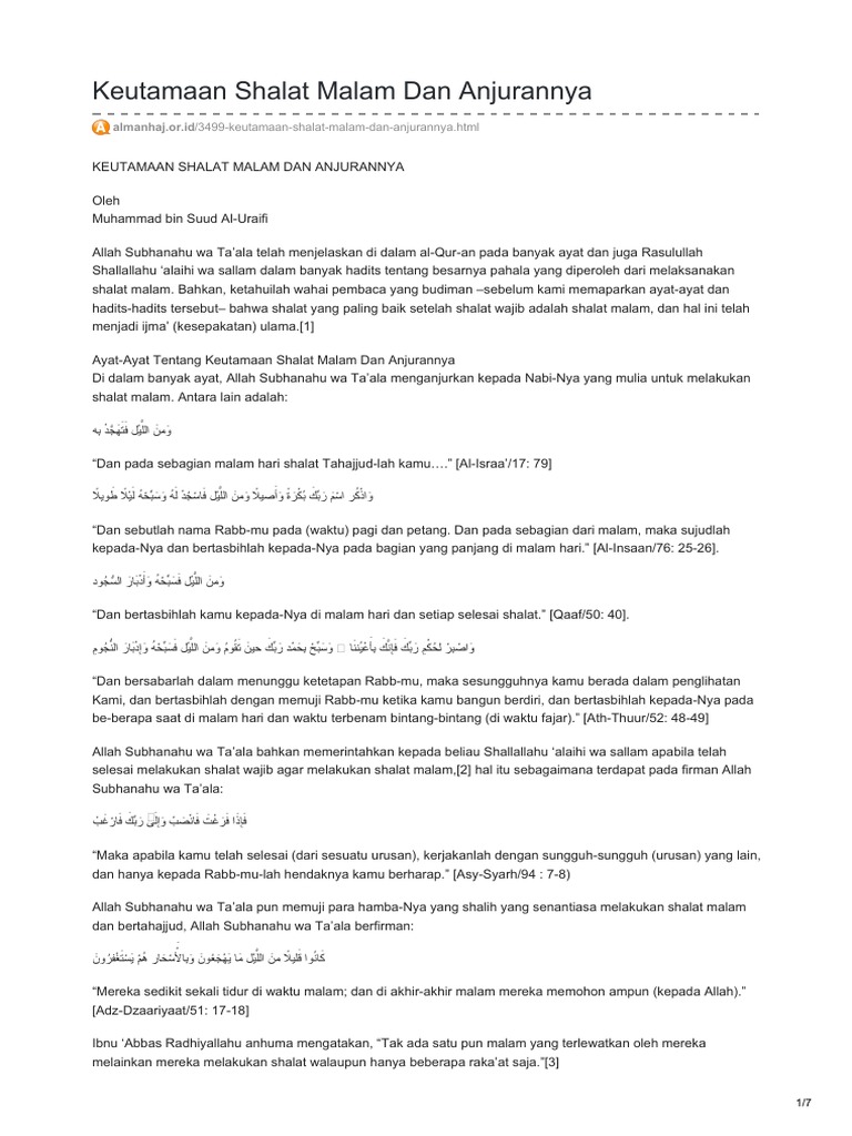 Almanhaj Or Id Keutamaan Shalat Malam Dan Anjurannya