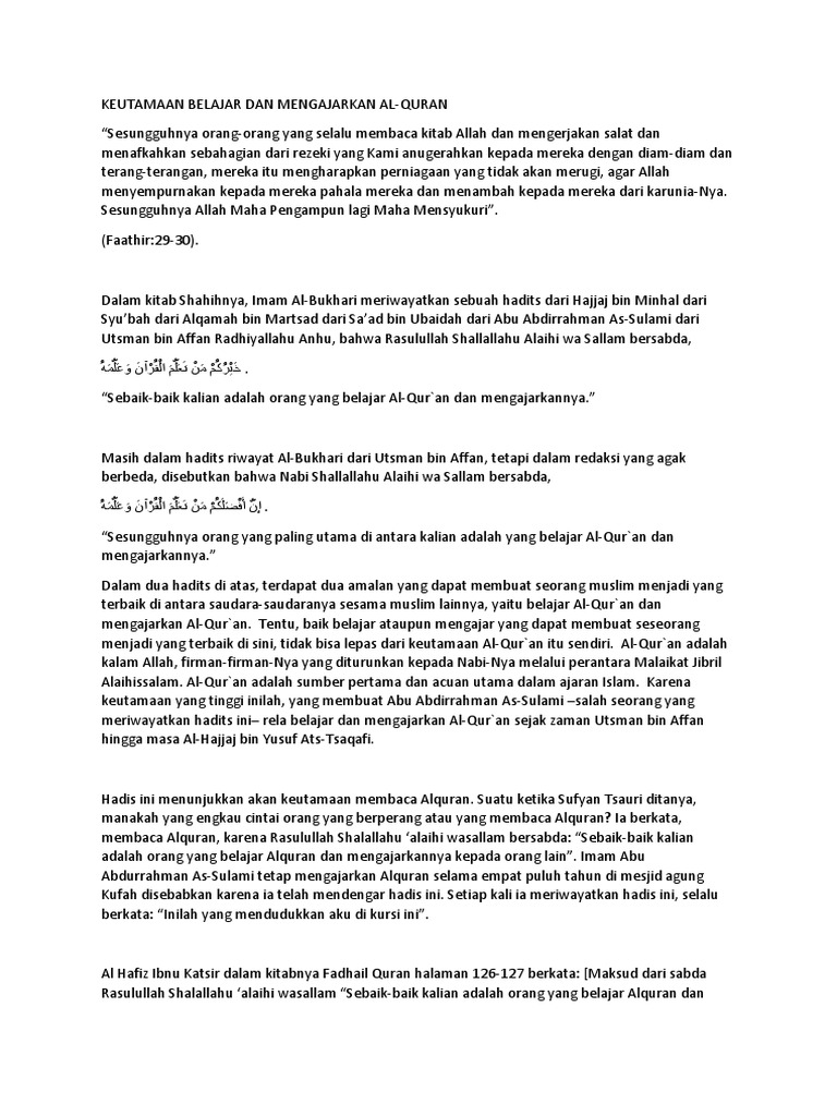 Keutamaan Belajar Dan Mengajar Al Quran Uthman Bin Affan M