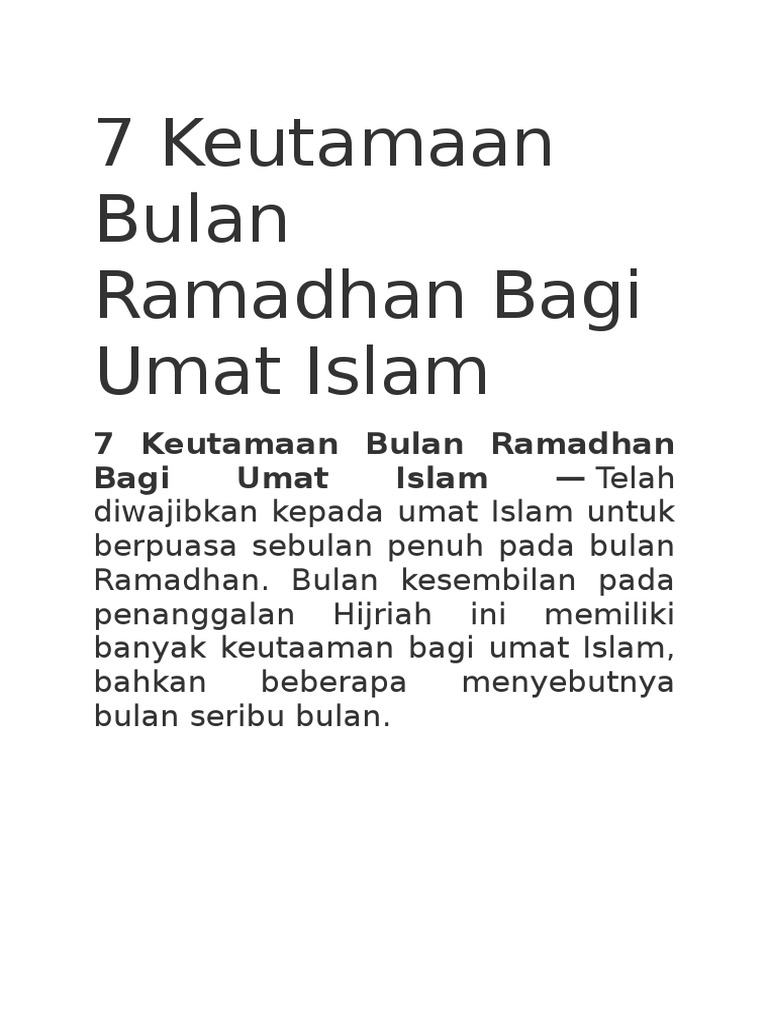 Inilah 10 keutamaan bulan ramadhan by ibnu shalih el sirawy 0035 fikih serba serbi 35 comments. Ramadhan merupakan bulan dengan nomor urut kesembilan dari dua belas bulan dalam penanggalan hijriyah.
